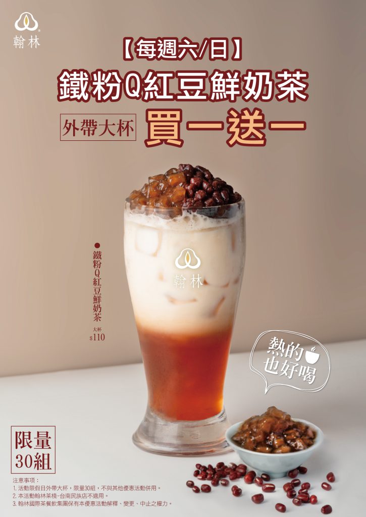 【鐵粉Q紅豆鮮奶茶】外帶大杯👉買一送一✔ 週六、週日限定 ✔ 每日限量30 組!