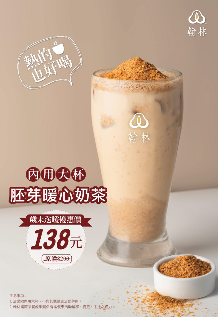 【胚芽暖心奶茶】內用單點大杯👉特價$138(機場門市不適用)