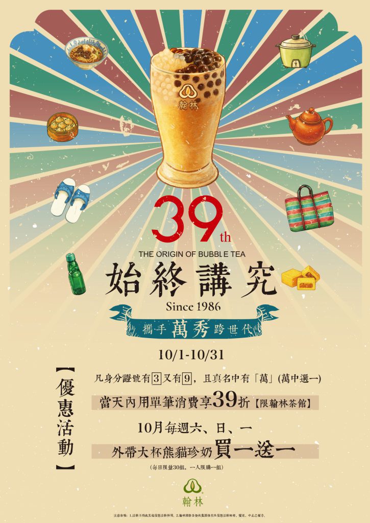 ㊗️翰林39週年慶,1986年至今,始終講究,10月與您一起同歡慶🎉🎊。