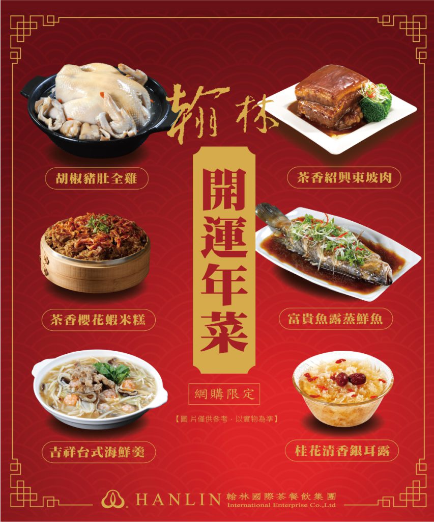 一起迎接吉祥🐎馬年,翰林精選六道傳統年味手路菜,包含胡椒豬肚全雞鍋、茶香紹興東坡肉、吉祥台式海鮮羹、富貴魚露蒸鮮魚(鱸魚)、茶香櫻花蝦米糕、桂花清香銀耳露,適合4~6人享用,團圓必備!每組售價$3588元!